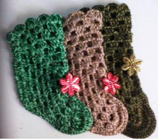 As 3 botinhas para embalagem que fiz inicialmente e que não sabia onde procurar no PC, encontrei e aqui estão: uma verde bandeira feita com Cléa e Princesinha verde; uma verde musgo também com Cléa e Raiza verde musgo e a do meio com Camila e Raiza marrom.